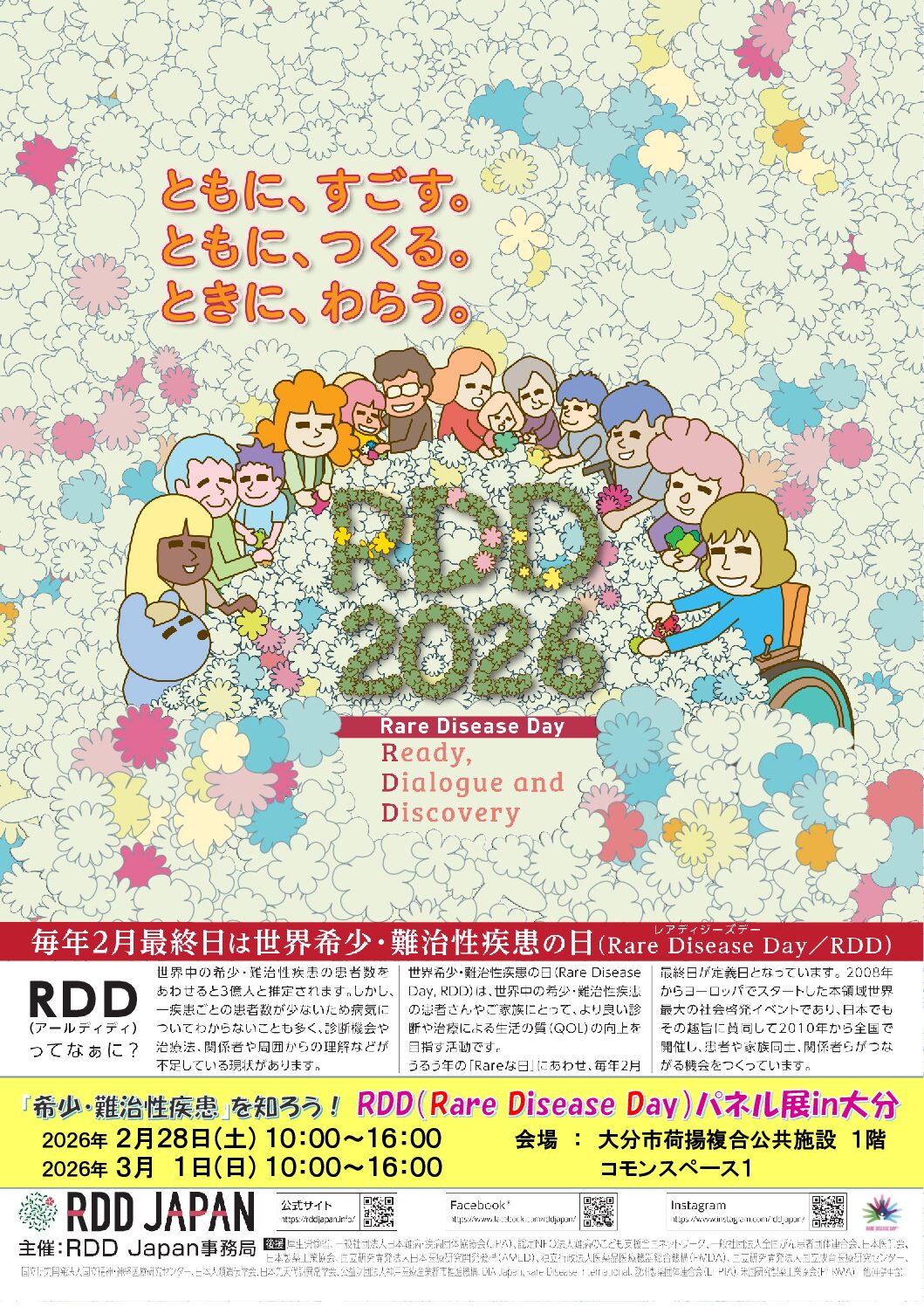 お知らせー難病連 RDD大分2026 2026年2月28日(土)3月1日(日)、大分市荷揚複合公共施設コモンスペースにてRDDパネル展を開催しました。大分合同新聞の開催告知記事や当日の記事の効果は大きく、約100名の方が来場してくださいました。ガラス張りの明るく広い会場ではパネ... 2026.04.04 お知らせー難病連